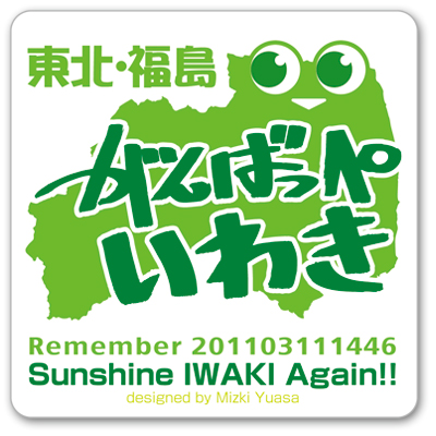 ![]() ■少しずつですがステッカーの市外/県外発送をさせていただいています。 いわき市外にいらっしゃる皆さまからお寄せいただいた応援メッセージ等を掲載しています。 がんばっぺいわき from Japanページはこちら 最終更新:2012.1.13 |