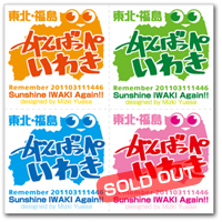 <がんばっぺいわきプリントシール>![]() ![]() ■ カラー:ブルー(PB)・グリーン(PG)・オレンジ(PO) ■素材:プリントシール(合成紙オフセット印刷&コーティング) ■サイズ:10cm x 10cm ■価格:300円+αお気持ち +α分の全額 及び収益の一部を、いわき市内の復興支援団体 「がんばっぺいわき!ネットワーク (代表:Erico(蛭田江里子))」さんへ 寄付させていただきます。 <がんばっぺいわきプリントシール(Small)> ![]() ■ カラー:4色を1枚のシートにプリントしています。 (オレンジ/グリーン/ブルー/ピンク) ※各自でハサミなどでカットしてご使用ください。 ■素材:プリントシール(合成紙オフセット印刷&コーティング) ■サイズ:8cm x 8cm (1枚あたり4cm x 4cm) ■価格:300円+αお気持ち +α分の全額 及び収益の一部を、いわき市内の復興支援団体 「がんばっぺいわき!ネットワーク (代表:Erico(蛭田江里子))」さんへ 寄付させていただきます。 <がんばっぺいわきカッティングシートステッカー> ![]() ![]() ![]() ※ソールドアウト分のカッティングシートステッカーにおきましても 受注生産にてご注文承っております。 少枚数からのオーダーも可能です。詳細はメールにてお問合せください。 ![]() ■ カラー:ホワイト(CW)・ブルー(CB)・レッド(CR) ■素材:カッティングシート ■サイズ:9cm x 7.5cm ■価格:300円+αお気持ち +α分の全額 及び収益の一部を、いわき市内の復興支援団体 「がんばっぺいわき!ネットワーク (代表:Erico(蛭田江里子))」さんへ 寄付させていただきます。 <凛音NewSingle「みつけたもの」 特別コラボがんばっぺいわきステッカー封入> ![]() 福島県いわき市在住のシンガーソングライター凛音(りんね)のニューシングル「みつけたもの」がリリース。震災後のいわき市内そして日本/ 世界の繋がりを歌った本曲のCDに、スペシャルコラボのがんばっぺいわきステッカー(4cm x 4cm)を封入いただきました! 定価500円で、 売上げの一部がいわき市の復興支援の為に寄付されます。 本、ユアサミズキ サイトからの通販も実施させていただいています。お求めの方は上記のメールアドレスまでご一報ください。 詳細は、コラボレーションページをご参照ください!! |