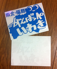 | ■先日来ご好評いただいているカッティングシートステッカーに加え、プリントシールタイプ/携帯電話等向けのスモールサイズを追加いたしました。いずれも300円+αお気持ちで販売させていただいています。+α分の全額と収益の一部をいわき市内の復興支援団体「がんばっぺいわき!ネットワーク(代表:Erico(蛭田江里子))」さんへ寄付させていただきます。 ■個人での活動の為、少しずつではありますが、市外/県外への発送も行わせていただいています。現金書留もしくは銀行振込みにてお支払いいただいた後の発送とさせていただいております。 ■ご質問・お問合せ・ご注文はメールにてご連絡いただければ幸いです。 → info@mizdesk.com |