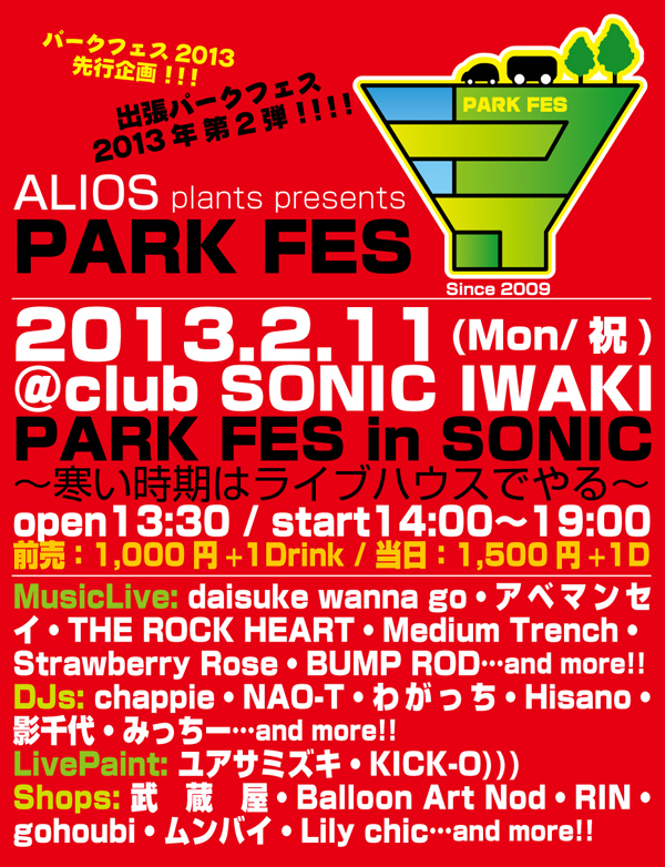 【パークフェス5月 / フクミライ2013】 イベント情報ページを更新いたしました。5月12日のパークフェスの情報、またライブペインティングで出演させていただく6月8日にMusic & Bar QUEENで開催のフクミライ2013 in いわきのイベント詳細をイベントページにアップしました。ぜひご覧ください! → イベントページ |