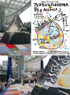 / フェスティバルFUKUSHIMA in AICHI @ オアシス21 / ライブペイント作品展示】 イベント情報ページを更新いたしました。 この週末9/7(土),8(日)に愛知県のオアシス21(名古屋市中区栄)で開催中の「あいちトリエンナーレ2013 / フェスティバルFUKUSHIMA in AICHI」会場に、ユアサミズキ ライブペイント"ティピー"を展示していただいています! 同作品は、今年3月に同じく名古屋で開催された「アースデイいわき in なごや 2013」でのライブペイント作品。インディアンテントの"ティピー"にペイントさせていただいたものです。 ぜひご来場の際はご覧いただければと思います!今回ユアサは会場に伺えなかったのですが、インディアン吉田氏を始めとしてアースデイいわきチームが設営してくださったそうです!ありがとうございます! 左上/下の写真は吉田さんから拝借。右上のイラストフライヤーは岐阜のイラストレーター柚木ミサト氏作成のものをお借りしています。 フェスティバルFUKUSHIMA in AICHIサイト http://ffinaichi.jimdo.com/ あいちトリエンナーレ2013(フェステッィバルFUKUSHIMAページ) http://aichitriennale.jp/artist/project_fukushima.html アースデイいわきサイト http://ameblo.jp/earthday-iwaki/ 柚木ミサトさんサイト http://www.yugi.jp → イベントページ |