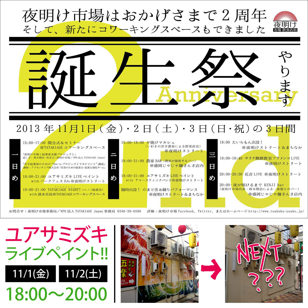 RIN1周年祭!】 イベント情報ページを更新いたしました。 12/23に開催されるRIN(福島県いわき市/小名浜大原)の誕生祭に先駆けて、11/20から壁画ペインティングを開催します!! 詳細はイベントページでチェック! → イベントページ |