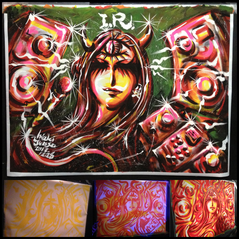 2月のライブペイント無事終了! 先週末からの3連休に開催された、「Bar Room 5周年DJパーティ−」及び「PARK FES in SONIC」の両イベント。ライブペインティングも無事に終了しました。 近日中にライブペイントプロセスなどもアップしますのでお楽しみに。 ←画像のクリックで大きい画像が開きます。 |