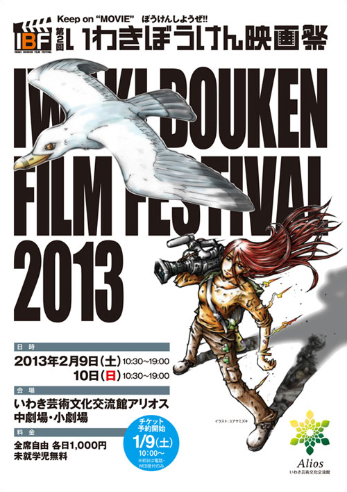 いわきぼうけん映画祭リーフレット いよいよ開催まで1ヶ月をきった、「第二回 いわきぼうけん映画祭」。ポスターやカラーリーフレットがリリースされています! 同イベントは隔年開催の映画祭で、ユアサミズキが第二回のメインビジュアルを担当させていただきました。同リーフレットは、映画祭のメイン会場となる「いわき芸術文化交流館アリオス」などで配布中ですので、ぜひチェックしてみてください。 ●映画祭ホームページはこちら。 http://ibff.jp/ ●アリオスホームページはこちらです。 http://iwaki-alios.jp また、 昨年末ではありますが、いわき芸術文化交流館アリオスから発行されている「アリオスペーパー vol.28」でも映画祭特集が組まれています。アリオスペーパーは、市内新聞折込の他、下記のアリオスサイトからのダウンロードも可能です。 http://iwaki-alios.jp/cd/app/index.cgi?CID=aliospaper |