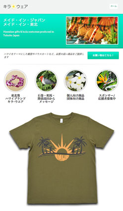 東北発ハワイブランド「キラ☆ウェア」スタート!:ユアサミズキTシャツデザイン! 東日本大震災で被災した地域の縫製業に従事している個人・工場・工房などが連携して、1つのブランドとして2013年9月に立ち上げられた、東北発ハワイブランド「キラ☆ウェア」さん。東北の産業復興と雇用促進を目指し、ハワイをテーマにした雑貨やフラの衣装を提供されています。 この度 ユアサミズキもTシャツのデザインに携わらせていただきました! 既にオンラインショップにもリリースされていますので、ぜひご覧下さい。 ユアサ デザインTシャツページ: http://store.shopping.yahoo.co.jp/kilaware/hin-121.html ●キラ☆ウェアHP…http://kilawear.com ●Facebookページ…https://www.facebook.com/kilawear ●ショップサイト…http://store.shopping.yahoo.co.jp/kilaware <以下 キラ☆ウェアさんプレスリリースより抜粋> 被災地3県の縫製工場などがハワイをテーマにした服飾ブランドを発表 ~日本興亜・東北「社会起業家応援ファンド」で採択、東北の雇用促進を目指す~ 一般社団法人東北マハロファクトリー(福島県郡山市、代表:坂井弘美)は本日、東日本大震災の被災地にある複数の県の縫製工場や工房による、共通の服飾ブランド「キラ・ウエア」を発表しました。 本ブランドは、フラダンスの衣装やハワイをテーマにした手作りの雑貨などを主力商品とし、本日より EC サイト(http://store.shopping.yahoo.co.jp/kilaware)で販売が始まります。また、9/11 より、Yahoo! JAPAN が運営する「復興デパートメント」(http://info.shinsai.yahoo.co.jp/department/)からも買えるようになります。また、復興デパートメントの「東北ものづくり特集」でも紹介されます。 新ブランド「キラ・ウエア」を構成する縫製チームは、石巻(宮城県)、相馬(福島県)、陸前高田(岩手県)から成り、それぞれ津波などで被災した地域での縫製の仕事の増加と雇用促進を目指します。各チームは本業と新ブランドの仕事を並行して行うことができ、申し出があれば他の被災地の縫製団体の参加も受け入れる予定で、かつて縫製が盛んだった頃の東北を目指し、復興に向けて活動してまいります。 キラ・ウエアについて、東北マハロファクトリー代表理事の坂井弘美は次のように述べています。 「自然の恵みに敬意をはらい、幸せや喜びを分かち合い、思いやりと調和を大切にするハワイの人々の精神(アロハスピリット)と、日本人のそれとは大変近いものがあり、そのためか、日本でのハワイ人気・フラ人気は増加の一途をたどっています。メイド・イン・東北の、美しくて質の高い商品を提供することで、フラやハワイが好きな皆様に喜んでいただき、さらに東北復興に1歩でも近づくことができれば幸いです。キラ・ウエアには、複数の被災地と多くの支援者が関わっており、まさしく『絆ブランド』と呼ぶに相応しいものになっています。私どもは、事務局としてそのお手伝いができることを誇りに思っています」 |