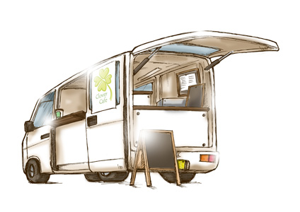 シャープな線と鮮やかな色彩のイラストテイストです。ポスターやフライヤー等にご活用いただいております。