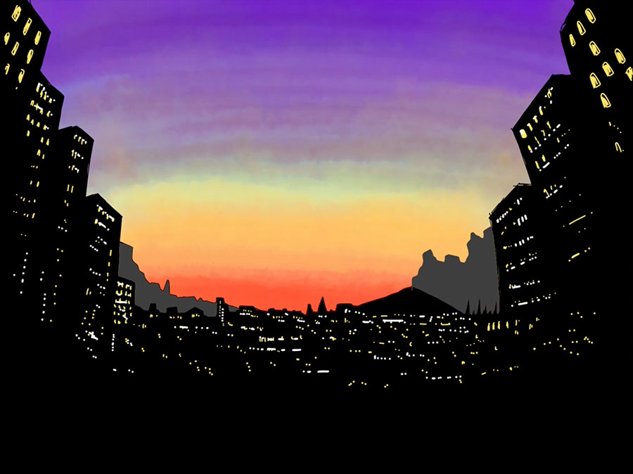 DJ UZAWAくんに切り替わってからは、選曲もグッと都会的なオシャレな感じになったので、夜景や街並みを描きたい気持ちになりました。延々と夜景の明かりを描いてた気持ちだったけど、タイムラプスにすると一瞬だね。