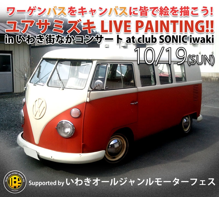 ■Events:10/19 いわき街なかコンサート"ワーゲンバスをキャンバスに皆で絵を描こう!・ユアサミズキ ライブペインティング" at club SONIC iwakiに出演決定!!