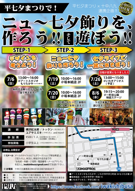 先日もご紹介していた、平七夕まつり(福島県いわき市)の「七夕飾りを作ろう&遊ぼう」ワークショップ、遂に残すはLIVE本番のみ!!