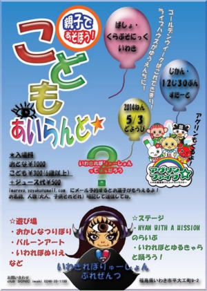 5/3(土)にclub SONIC iwakiで開催される親子であそぼう!「こどもあいらんど☆」にワークショップ講師として参加させていただきます。イベントページに詳細をアップしましたのでぜひご覧下さい。