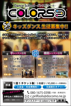 いわき市内を拠点にレッスンを開催されている、Dance Studio COLORSさん(福島県いわき市)のロゴデザイン、及び この5月からのレッスン募集フライヤーを制作させていただきました!