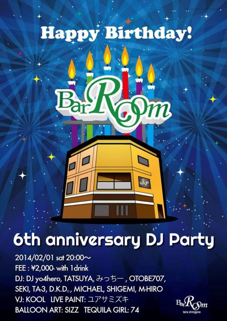 2/1(土)にBarRoomさんで開催された、6周年DJパーティー。ユアサミズキとしてはかれこれ5年連続、いわき市を代表する10名のDJの皆様のプレイと共に、ライブペンティングで出演させていただきました。