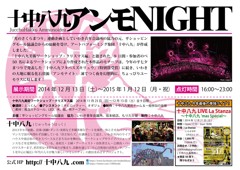 8/6~8/8にいわき駅前で開催される平七夕まつりの初日! 8/6(水)、平一町目のゆかた祭りステージ(T1ビル前 一町目公園)にて、「十中八九」LIVE開催です!! デザイン&制作ワークショップで皆で作ったオブジェももちろんガッツリ参戦!!