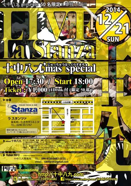 会場はiwaki burrows(福島県いわき市)、1/29(水)の19:00開場/19:30開演となります。ユアサの方でもチケットご予約承りますので、お気軽にご連絡いただければと思います。
