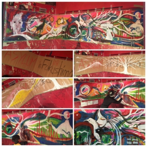 来週末3/21(土)に開催の、楢葉ならでは祭 〜楢葉町復興祈願祭2015〜 のイベント情報をアップいたしました。ユアサミズキ、会場となる仮設商店街「ここなら商店街」で2月後半から行っている壁画ペイントを当日完成予定。また楢葉中学校ではイラスト作品の展示もさせていただく予定でおります。
