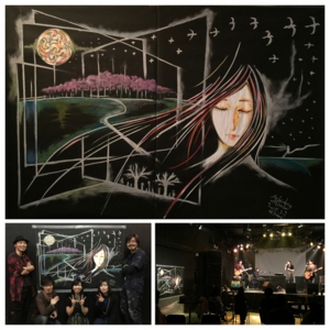3/7に開催されたLIVEイベントでのライブペイント作品をUP! 主催の花音さん、アベマンセイさん、凛音さんの出演したライブイベント。今回 2時間くらいの作画時間ではありましたが、黒模造紙にチョークとパステルをベースに時折アクリル絵具も使いながらの作画になりました。4つの窓を年月になぞらえながら、春のモチーフとして桜並木を描かせてもらっています。