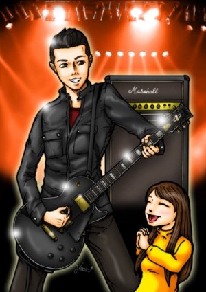 最近はイベント出演情報しかアップできていませんでしたが、各種イラスト/デザインのお仕事も制作させていただいています。本作品は今月半ばに制作させていただいた似顔絵イラスト。結婚披露宴の際にサプライズでプレゼントしたい!…という新婦さまからのご依頼で制作させていただきました。