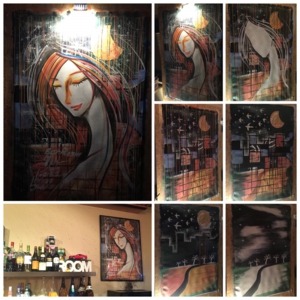 先月になってしまいましたが、2/14に開催されたDJパーティーでのライブペイント作品をUP! Bar Roomさんでの7th Anniversaryのイベントで、毎年ライブペイントで参加させていただいています。今回は時間内に3パターンくらいのイメージを常に重ね合わせていきながらの作画。最終的には従来のものよりも柔らかいイメージの作品になりました。