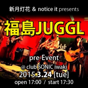 急遽ですが週明けの3/24(火) club SONIC iwaki(福島県いわき市)で開催の、新月灯花 & notice it presents【福島JUGGL pre event】に、ユアサミズキ、ライブペインティングで参加させていただきます。