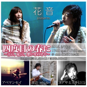 まもなく3/7(土)にclub SONIC iwaki(福島県いわき市)で開催される、花音(はなおと)さん企画のLIVE「四度目の春に ~音に、絵に、想いをのせて~」に、ライブペインティングで出演させていただける事になりました!